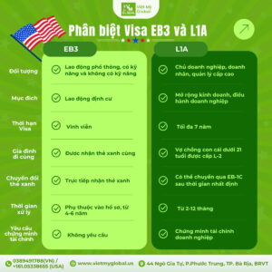 Cả Visa EB3 và Visa L1A đều mang lại cơ hội định cư và phát triển sự nghiệp tại Mỹ. Tùy thuộc vào nhu cầu và mục tiêu cá nhân, bạn có thể chọn loại visa phù hợp nhất. Việt Mỹ Global sẽ đồng hành cùng bạn trong mọi bước đi, từ tư vấn đến hoàn tất hồ sơ visa.